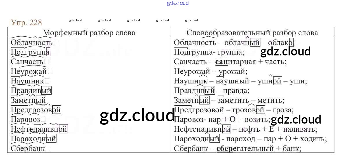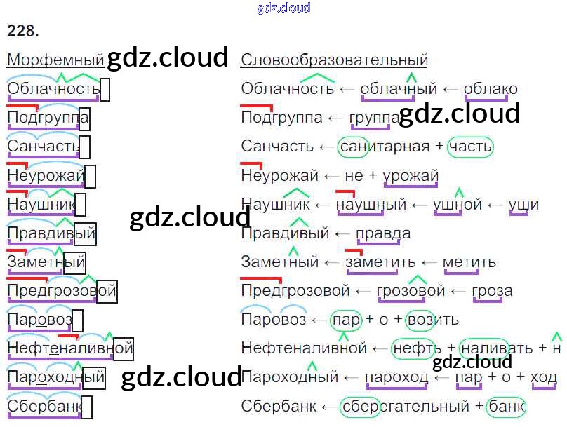 Ответ на задание 228 Учебник Русский язык за 6 (шестой) класс Баранов, Ладыженская, Тростенцова, Григорян, Кулибаба 2015, 2022 Часть 1, 2