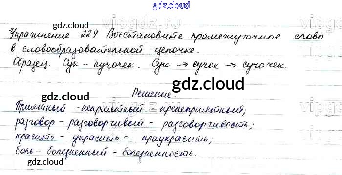 Ответ на задание 229 Учебник Русский язык за 6 (шестой) класс Баранов, Ладыженская, Тростенцова, Григорян, Кулибаба 2015, 2022 Часть 1, 2