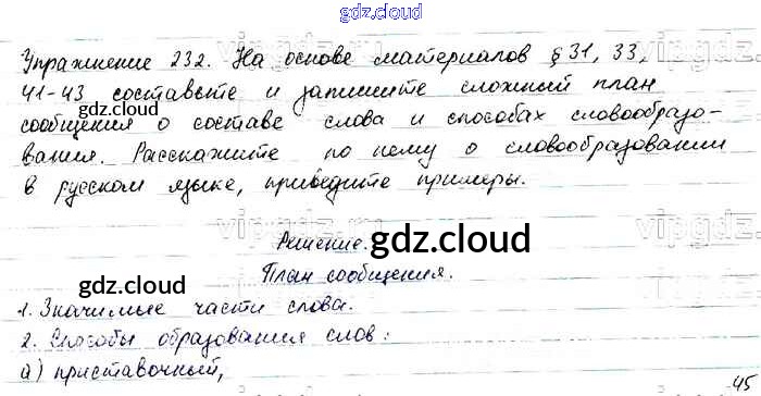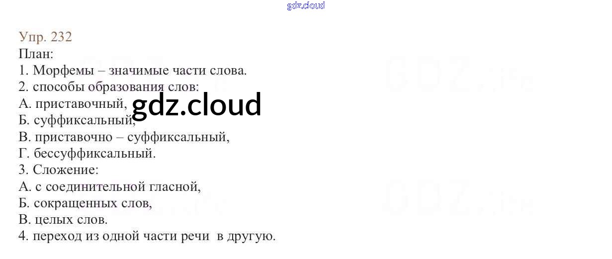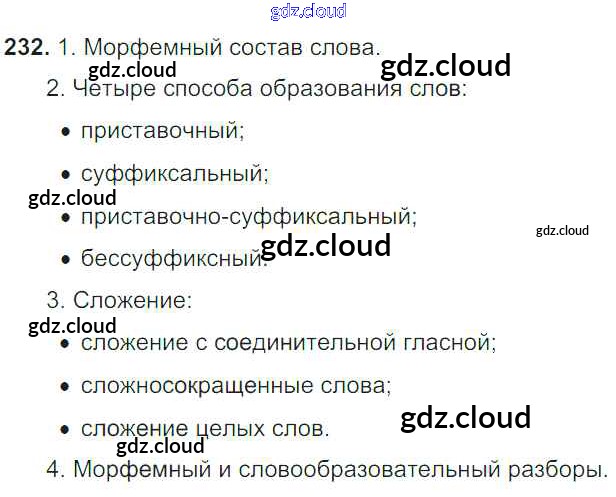 Ответ на задание 232 Учебник Русский язык за 6 (шестой) класс Баранов, Ладыженская, Тростенцова, Григорян, Кулибаба 2015, 2022 Часть 1, 2