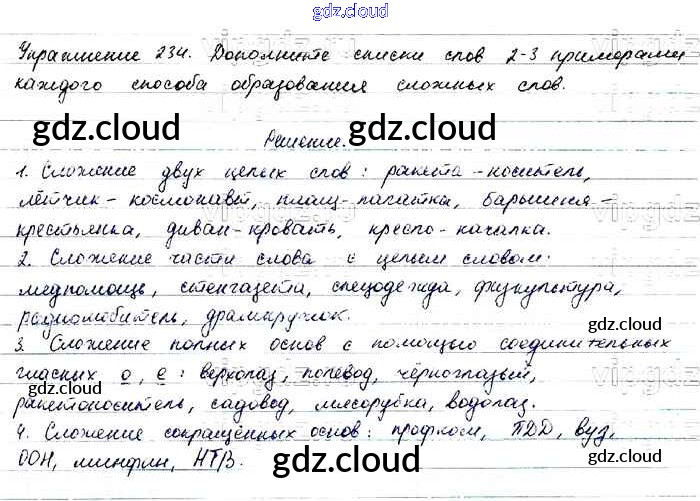 Ответ на задание 234 Учебник Русский язык за 6 (шестой) класс Баранов, Ладыженская, Тростенцова, Григорян, Кулибаба 2015, 2022 Часть 1, 2