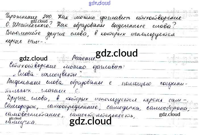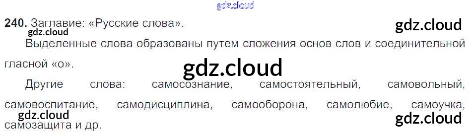 Ответ на задание 240 Учебник Русский язык за 6 (шестой) класс Баранов, Ладыженская, Тростенцова, Григорян, Кулибаба 2015, 2022 Часть 1, 2