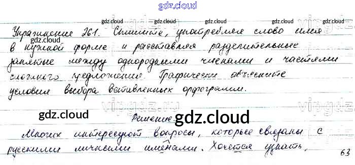 Ответ на задание 261 Учебник Русский язык за 6 (шестой) класс Баранов, Ладыженская, Тростенцова, Григорян, Кулибаба 2015, 2022 Часть 1, 2