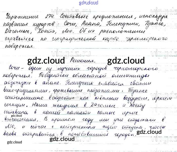 Ответ на задание 274 Учебник Русский язык за 6 (шестой) класс Баранов, Ладыженская, Тростенцова, Григорян, Кулибаба 2015, 2022 Часть 1, 2