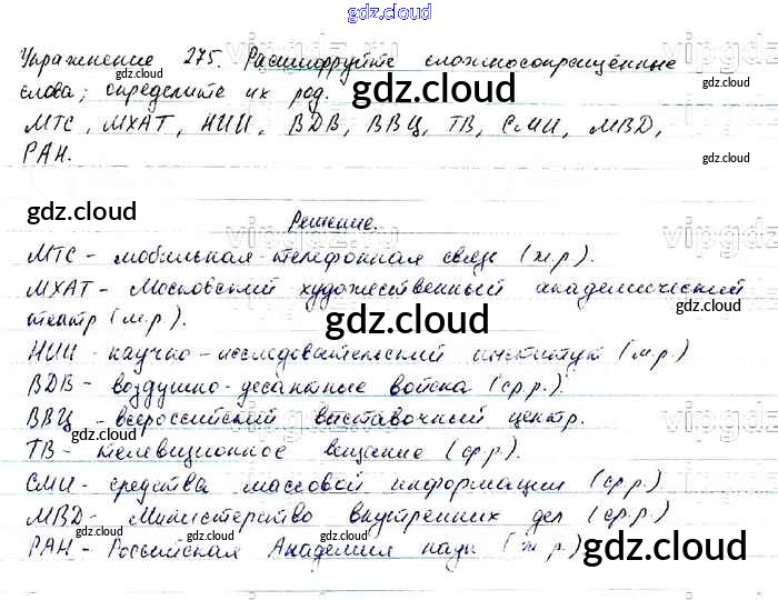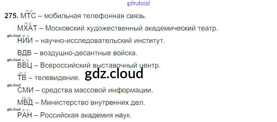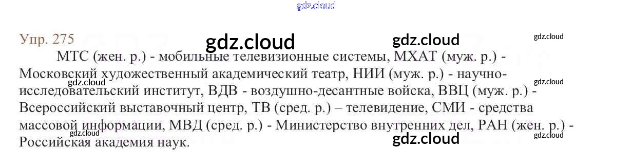 Ответ на задание 275 Учебник Русский язык за 6 (шестой) класс Баранов, Ладыженская, Тростенцова, Григорян, Кулибаба 2015, 2022 Часть 1, 2