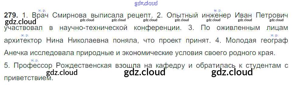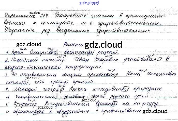 Ответ на задание 279 Учебник Русский язык за 6 (шестой) класс Баранов, Ладыженская, Тростенцова, Григорян, Кулибаба 2015, 2022 Часть 1, 2
