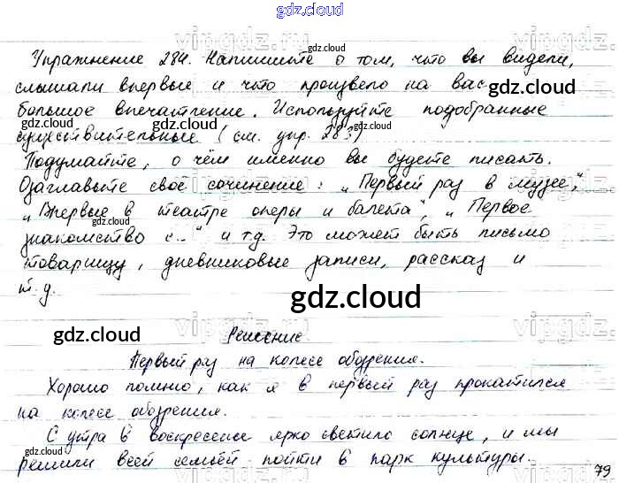 Ответ на задание 284 Учебник Русский язык за 6 (шестой) класс Баранов, Ладыженская, Тростенцова, Григорян, Кулибаба 2015, 2022 Часть 1, 2