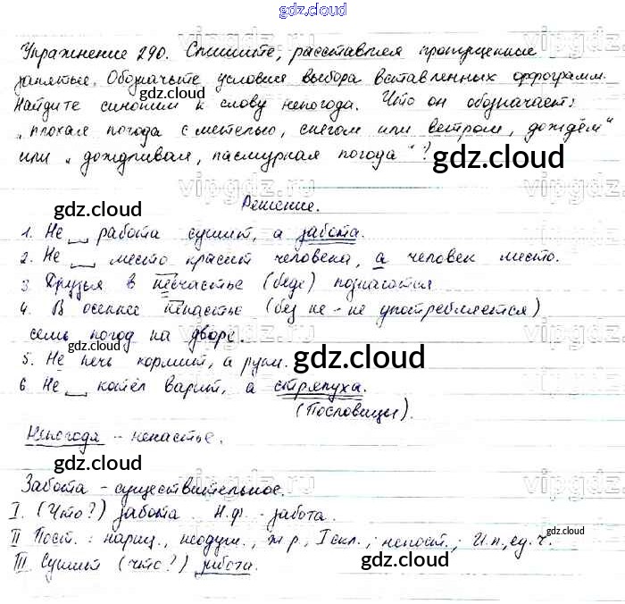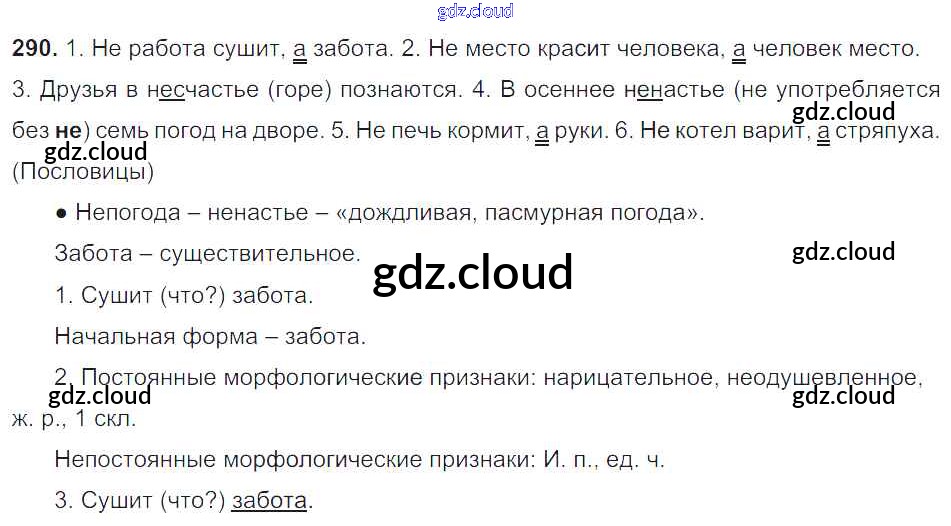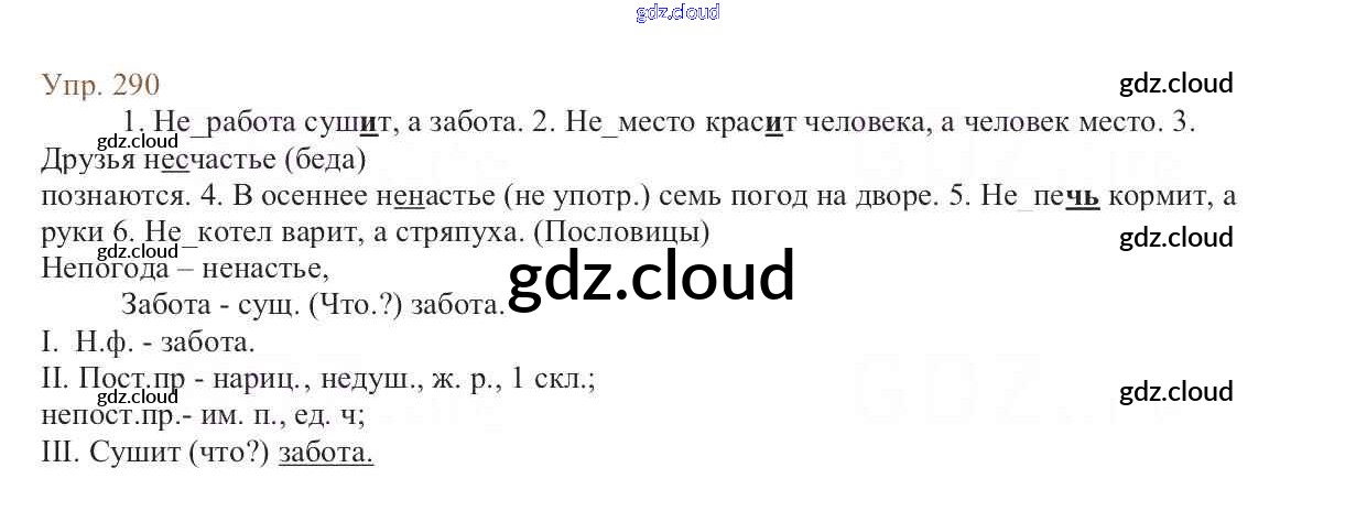 Ответ на задание 290 Учебник Русский язык за 6 (шестой) класс Баранов, Ладыженская, Тростенцова, Григорян, Кулибаба 2015, 2022 Часть 1, 2