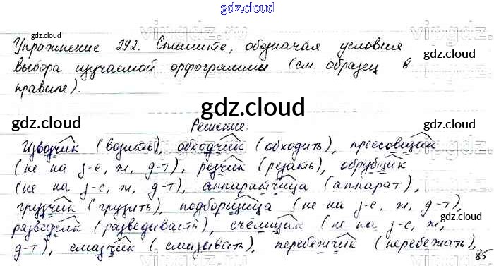 Ответ на задание 292 Учебник Русский язык за 6 (шестой) класс Баранов, Ладыженская, Тростенцова, Григорян, Кулибаба 2015, 2022 Часть 1, 2