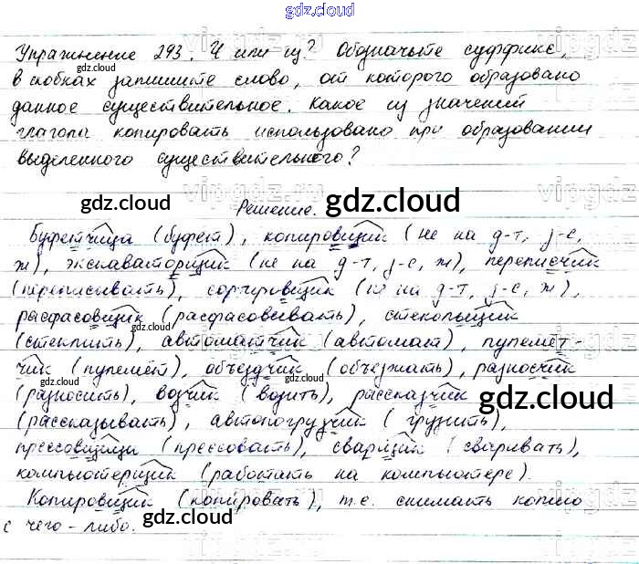 Ответ на задание 293 Учебник Русский язык за 6 (шестой) класс Баранов, Ладыженская, Тростенцова, Григорян, Кулибаба 2015, 2022 Часть 1, 2