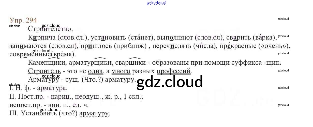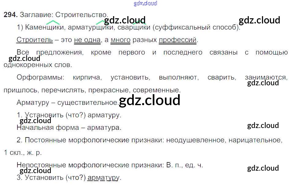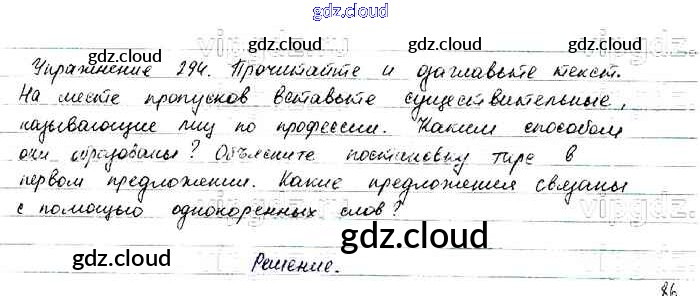 Ответ на задание 294 Учебник Русский язык за 6 (шестой) класс Баранов, Ладыженская, Тростенцова, Григорян, Кулибаба 2015, 2022 Часть 1, 2
