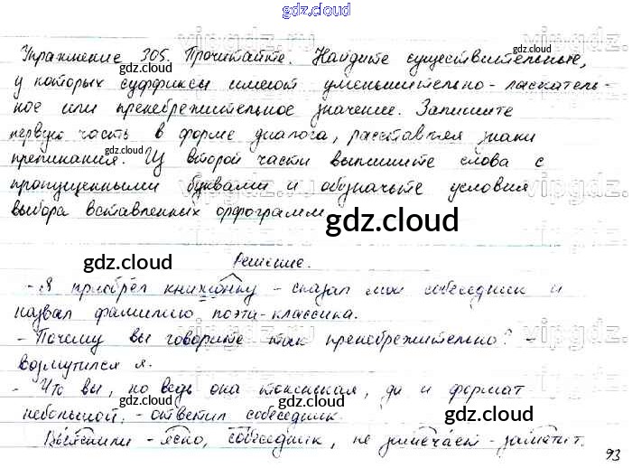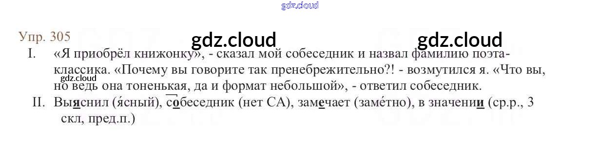 Ответ на задание 305 Учебник Русский язык за 6 (шестой) класс Баранов, Ладыженская, Тростенцова, Григорян, Кулибаба 2015, 2022 Часть 1, 2