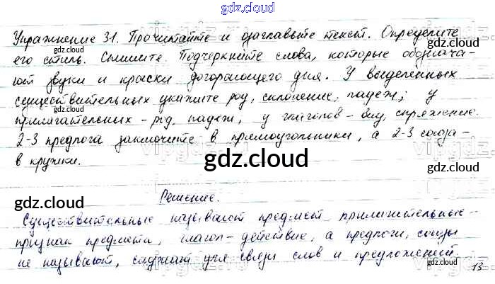 Ответ на задание 31 Учебник Русский язык за 6 (шестой) класс Баранов, Ладыженская, Тростенцова, Григорян, Кулибаба 2015, 2022 Часть 1, 2