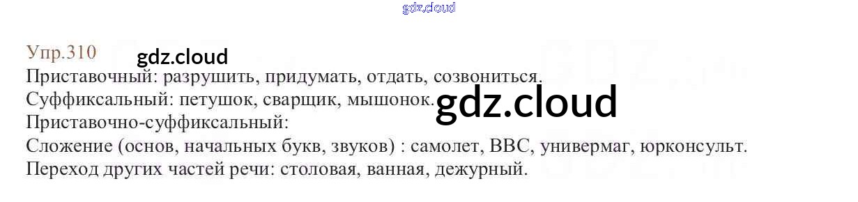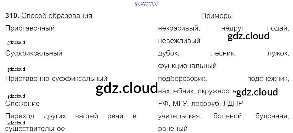 Ответ на задание 310 Учебник Русский язык за 6 (шестой) класс Баранов, Ладыженская, Тростенцова, Григорян, Кулибаба 2015, 2022 Часть 1, 2