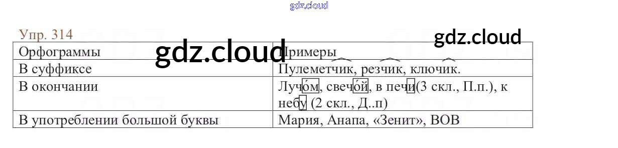 Ответ на задание 314 Учебник Русский язык за 6 (шестой) класс Баранов, Ладыженская, Тростенцова, Григорян, Кулибаба 2015, 2022 Часть 1, 2