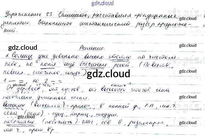 Ответ на задание 53 Учебник Русский язык за 6 (шестой) класс Баранов, Ладыженская, Тростенцова, Григорян, Кулибаба 2015, 2022 Часть 1, 2