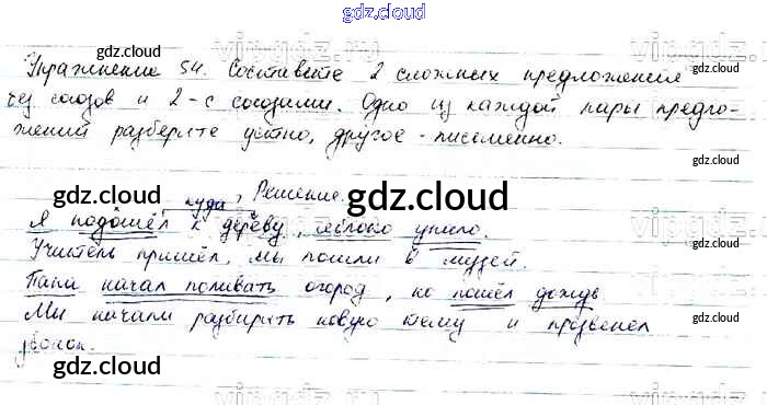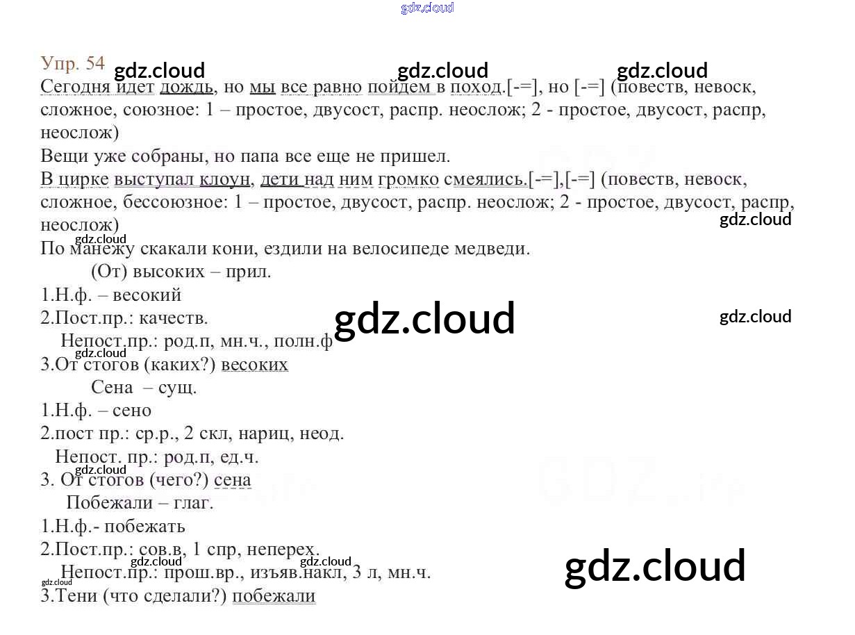 Ответ на задание 54 Учебник Русский язык за 6 (шестой) класс Баранов, Ладыженская, Тростенцова, Григорян, Кулибаба 2015, 2022 Часть 1, 2
