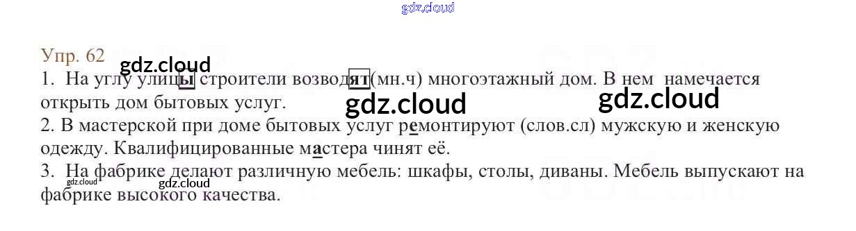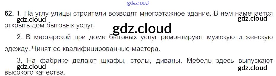 Ответ на задание 62 Учебник Русский язык за 6 (шестой) класс Баранов, Ладыженская, Тростенцова, Григорян, Кулибаба 2015, 2022 Часть 1, 2