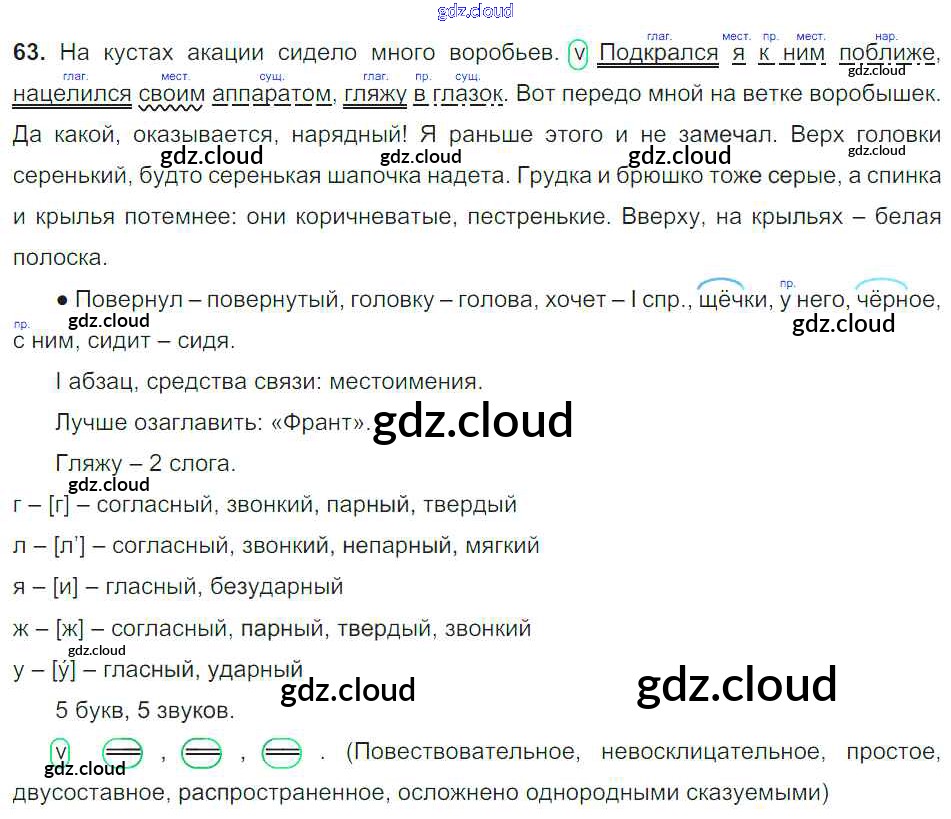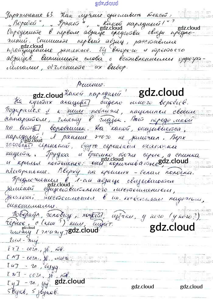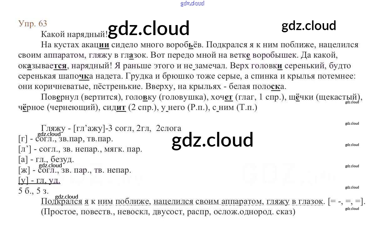 Ответ на задание 63 Учебник Русский язык за 6 (шестой) класс Баранов, Ладыженская, Тростенцова, Григорян, Кулибаба 2015, 2022 Часть 1, 2