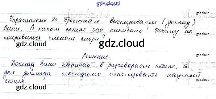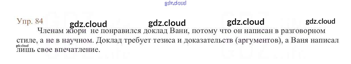 Ответ на задание 84 Учебник Русский язык за 6 (шестой) класс Баранов, Ладыженская, Тростенцова, Григорян, Кулибаба 2015, 2022 Часть 1, 2