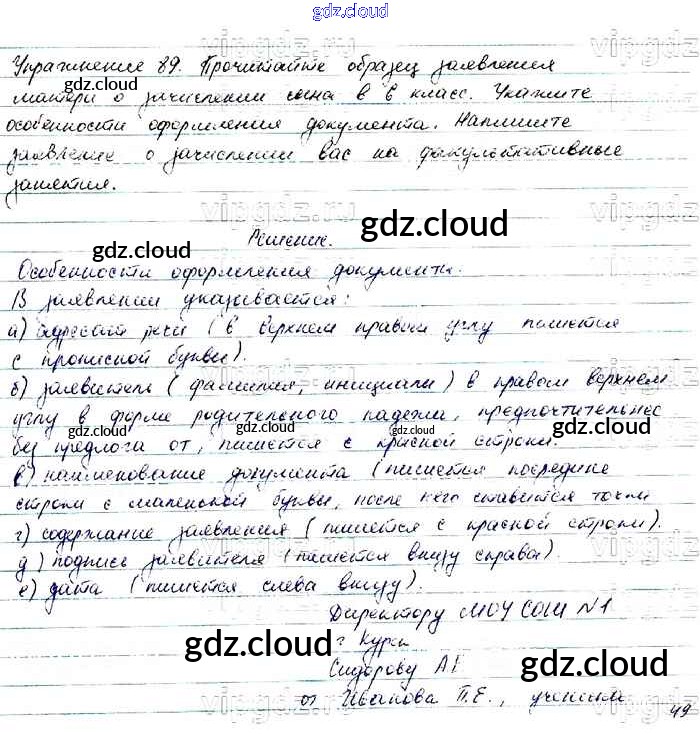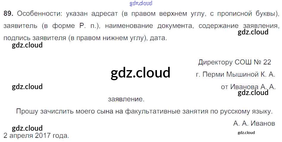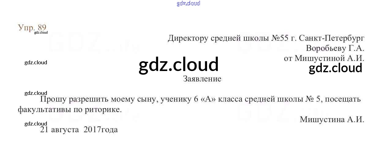 Ответ на задание 89 Учебник Русский язык за 6 (шестой) класс Баранов, Ладыженская, Тростенцова, Григорян, Кулибаба 2015, 2022 Часть 1, 2
