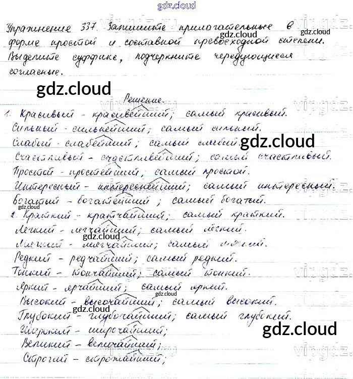 Ответ на задание 337 Учебник Русский язык за 6 (шестой) класс Баранов, Ладыженская, Тростенцова, Григорян, Кулибаба 2015, 2022 Часть 1, 2