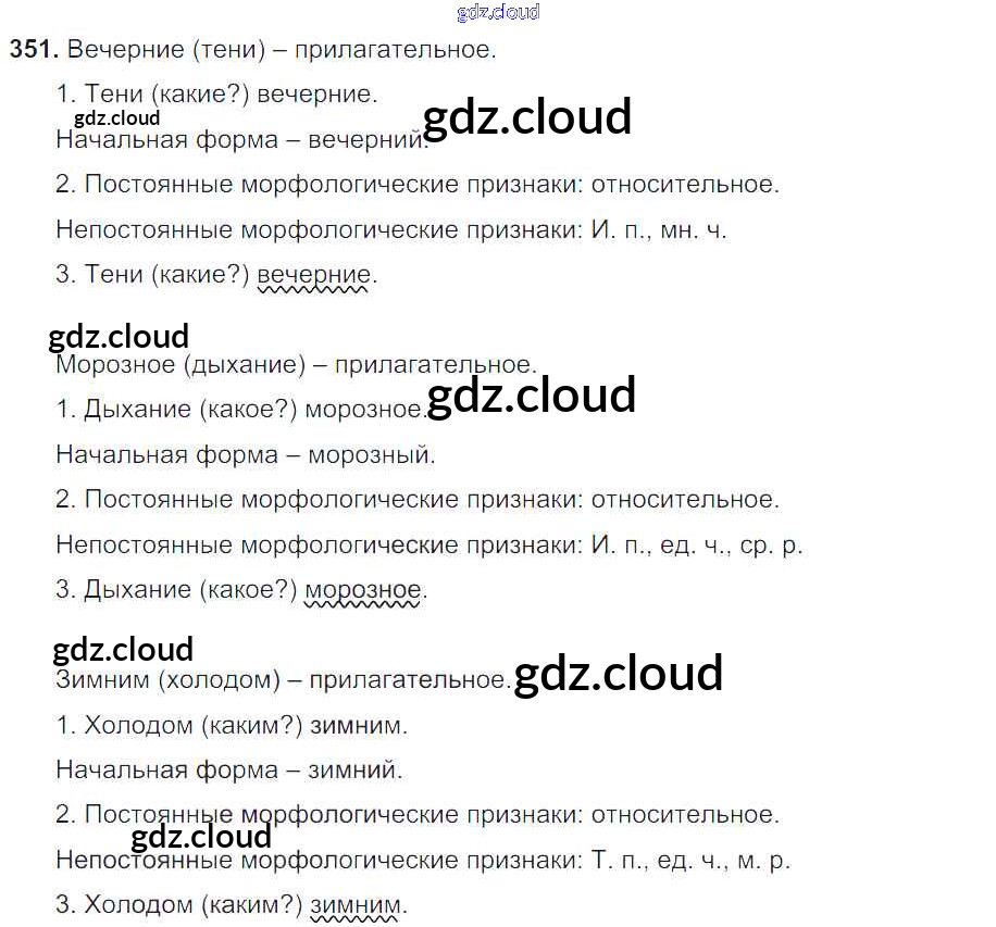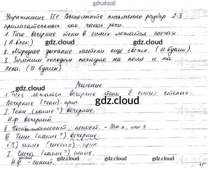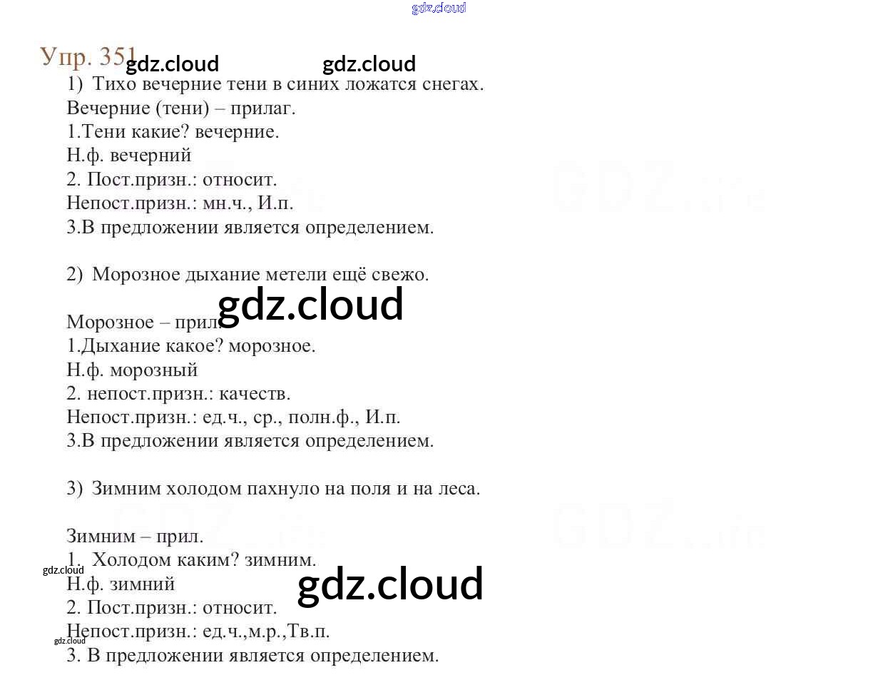 Ответ на задание 351 Учебник Русский язык за 6 (шестой) класс Баранов, Ладыженская, Тростенцова, Григорян, Кулибаба 2015, 2022 Часть 1, 2