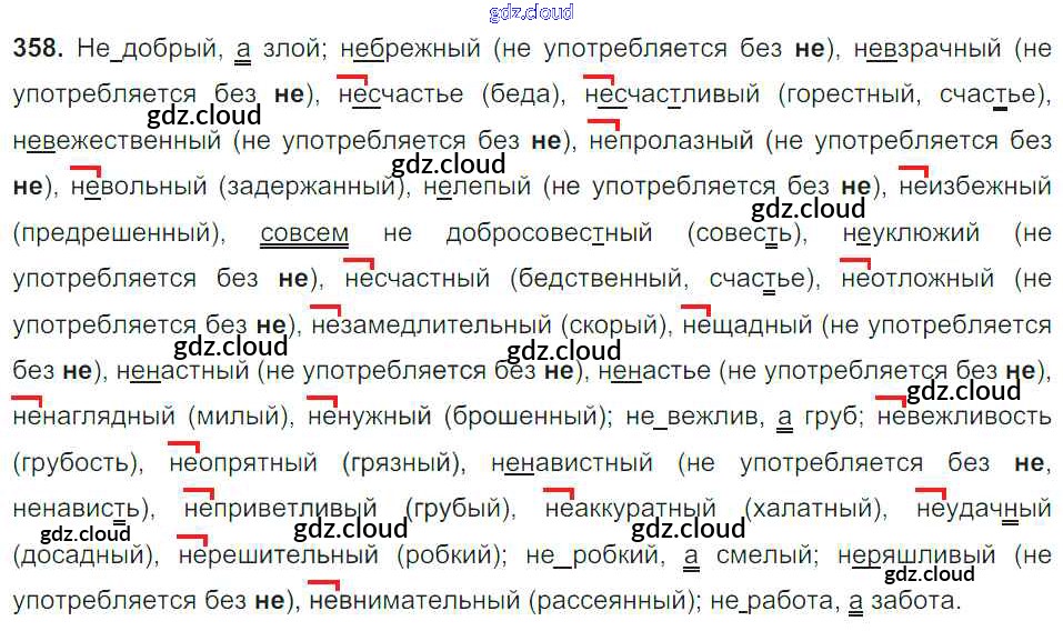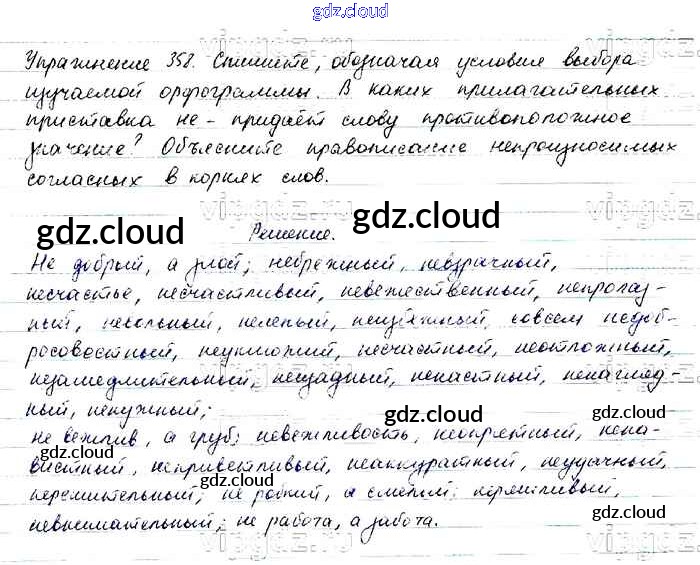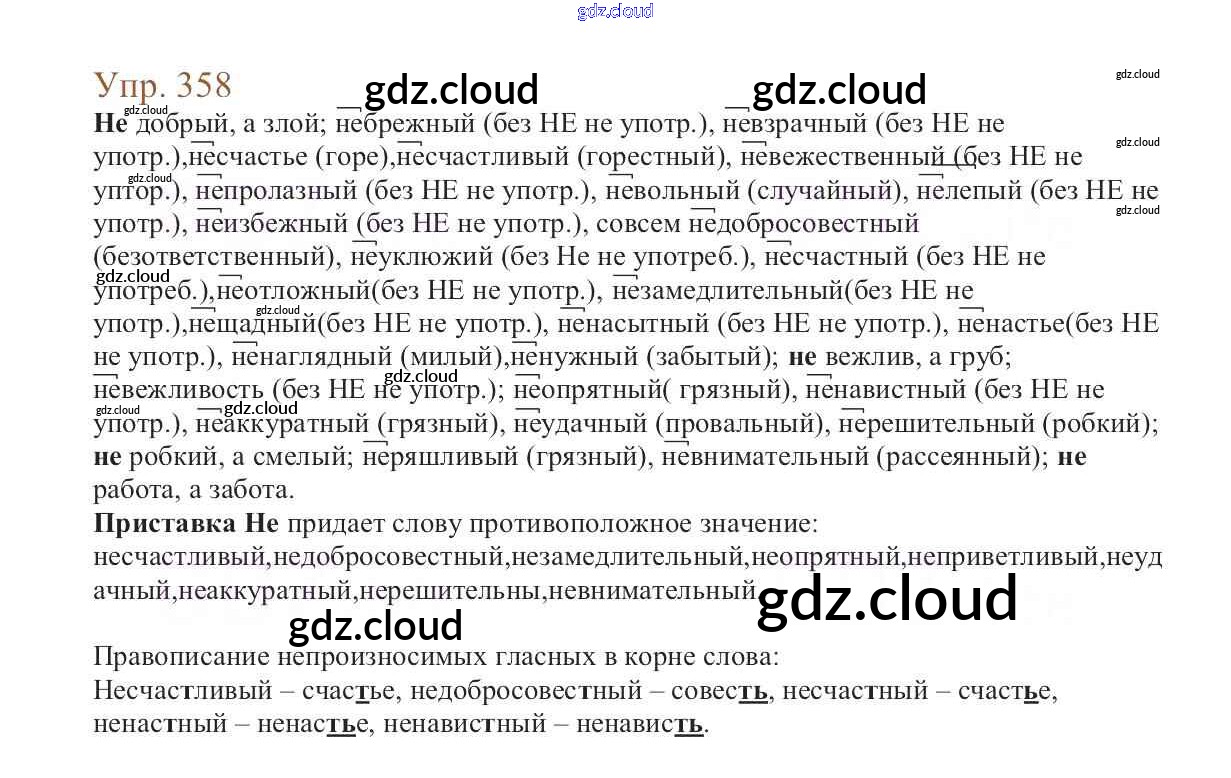 Ответ на задание 358 Учебник Русский язык за 6 (шестой) класс Баранов, Ладыженская, Тростенцова, Григорян, Кулибаба 2015, 2022 Часть 1, 2
