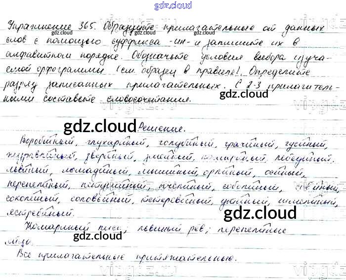 Ответ на задание 365 Учебник Русский язык за 6 (шестой) класс Баранов, Ладыженская, Тростенцова, Григорян, Кулибаба 2015, 2022 Часть 1, 2