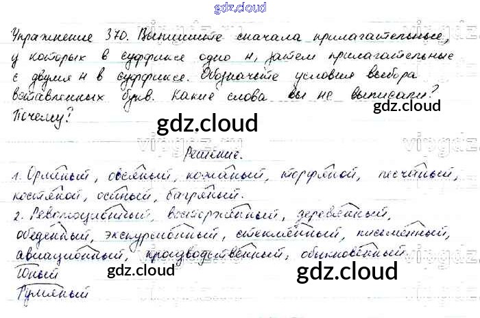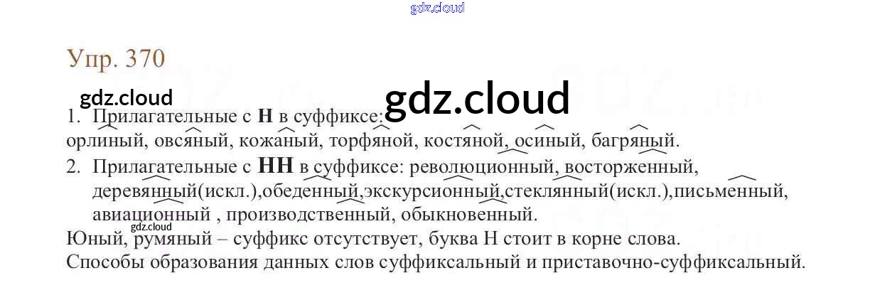 Ответ на задание 370 Учебник Русский язык за 6 (шестой) класс Баранов, Ладыженская, Тростенцова, Григорян, Кулибаба 2015, 2022 Часть 1, 2