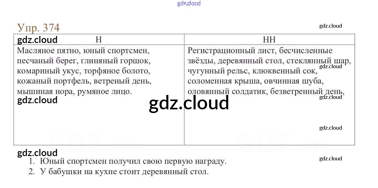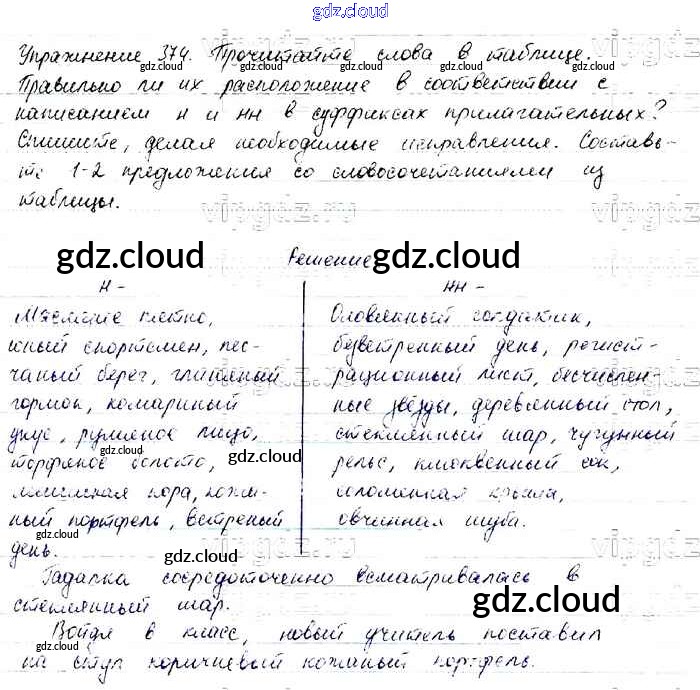 Ответ на задание 374 Учебник Русский язык за 6 (шестой) класс Баранов, Ладыженская, Тростенцова, Григорян, Кулибаба 2015, 2022 Часть 1, 2