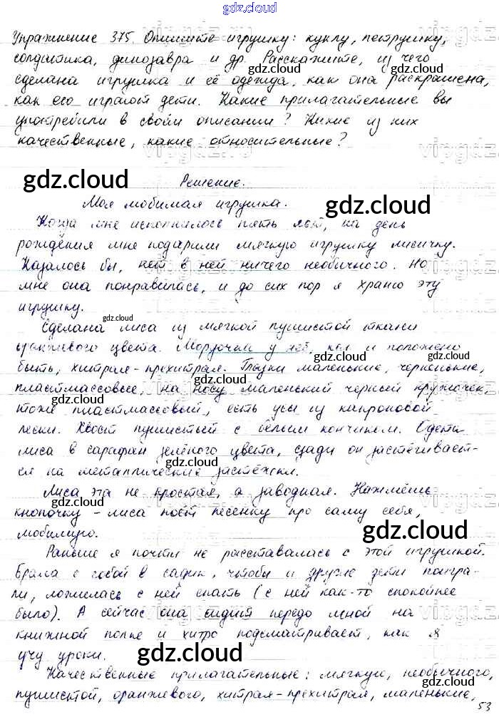 Ответ на задание 375 Учебник Русский язык за 6 (шестой) класс Баранов, Ладыженская, Тростенцова, Григорян, Кулибаба 2015, 2022 Часть 1, 2