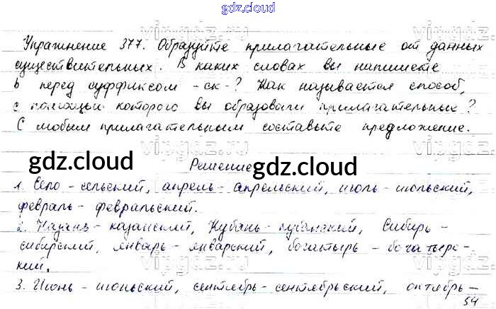 Ответ на задание 377 Учебник Русский язык за 6 (шестой) класс Баранов, Ладыженская, Тростенцова, Григорян, Кулибаба 2015, 2022 Часть 1, 2