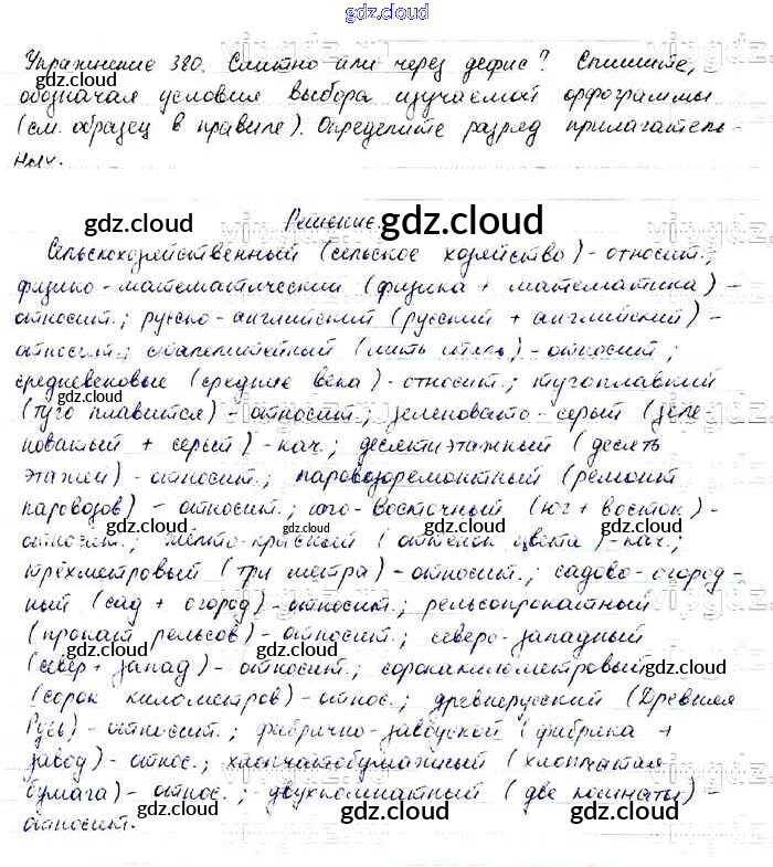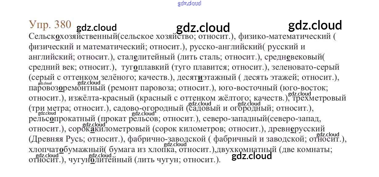 Ответ на задание 380 Учебник Русский язык за 6 (шестой) класс Баранов, Ладыженская, Тростенцова, Григорян, Кулибаба 2015, 2022 Часть 1, 2