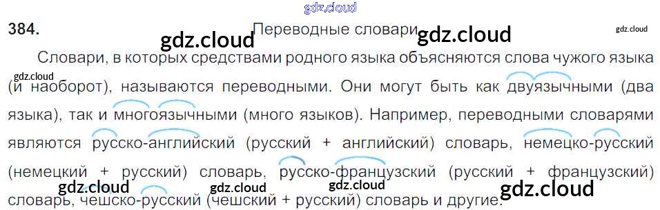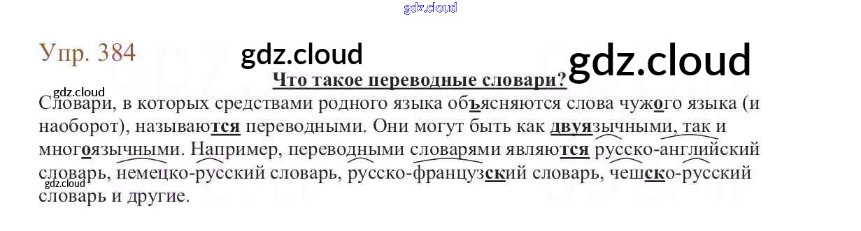 Ответ на задание 384 Учебник Русский язык за 6 (шестой) класс Баранов, Ладыженская, Тростенцова, Григорян, Кулибаба 2015, 2022 Часть 1, 2