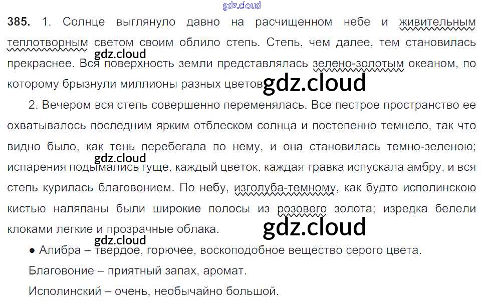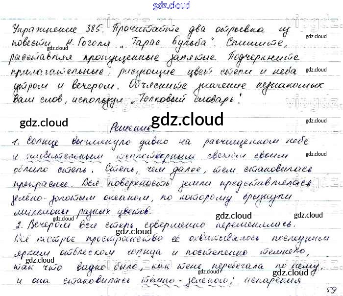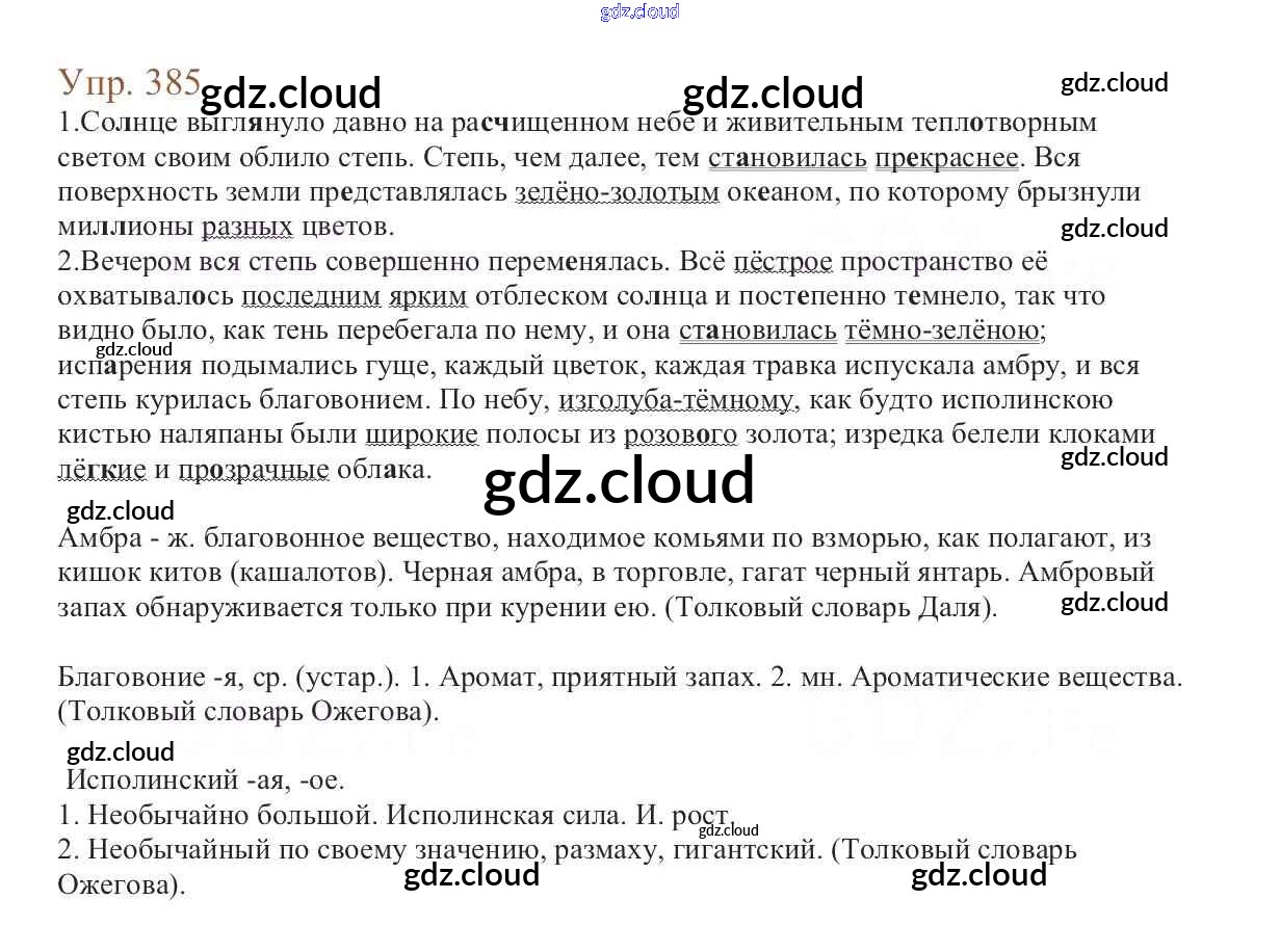 Ответ на задание 385 Учебник Русский язык за 6 (шестой) класс Баранов, Ладыженская, Тростенцова, Григорян, Кулибаба 2015, 2022 Часть 1, 2