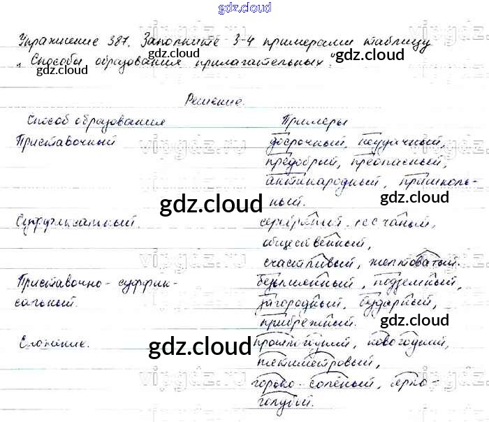 Ответ на задание 387 Учебник Русский язык за 6 (шестой) класс Баранов, Ладыженская, Тростенцова, Григорян, Кулибаба 2015, 2022 Часть 1, 2