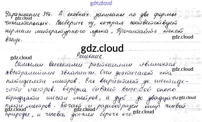 Ответ на задание 396 Учебник Русский язык за 6 (шестой) класс Баранов, Ладыженская, Тростенцова, Григорян, Кулибаба 2015, 2022 Часть 1, 2