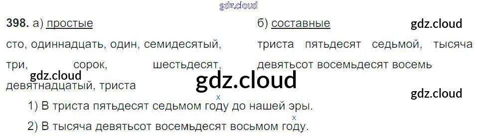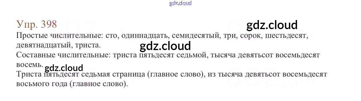 Ответ на задание 398 Учебник Русский язык за 6 (шестой) класс Баранов, Ладыженская, Тростенцова, Григорян, Кулибаба 2015, 2022 Часть 1, 2