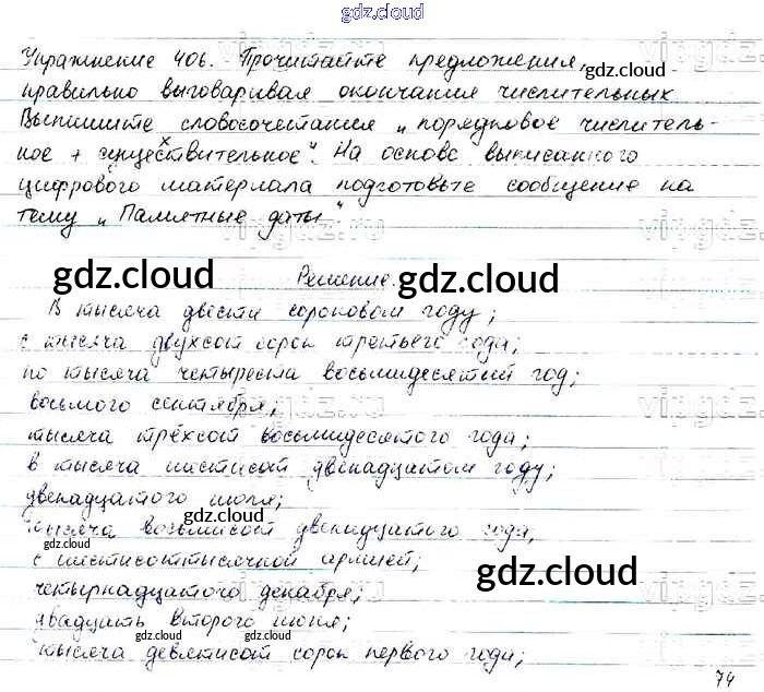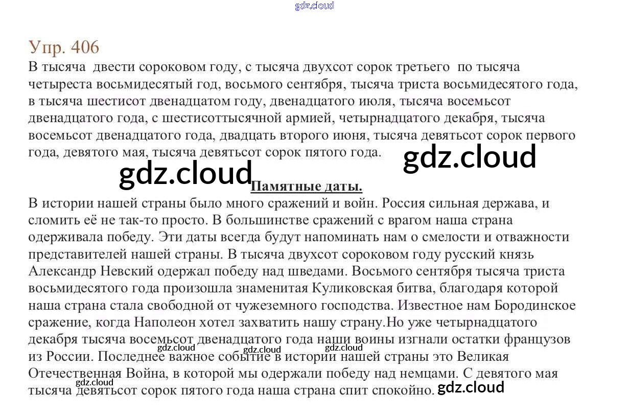 Ответ на задание 406 Учебник Русский язык за 6 (шестой) класс Баранов, Ладыженская, Тростенцова, Григорян, Кулибаба 2015, 2022 Часть 1, 2
