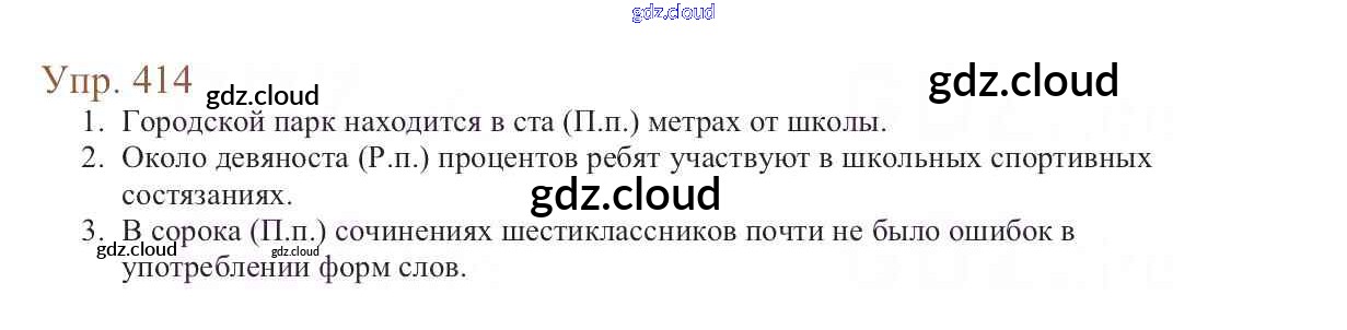Ответ на задание 414 Учебник Русский язык за 6 (шестой) класс Баранов, Ладыженская, Тростенцова, Григорян, Кулибаба 2015, 2022 Часть 1, 2