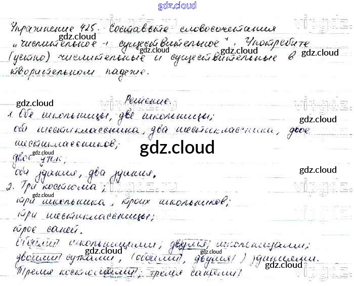 Ответ на задание 425 Учебник Русский язык за 6 (шестой) класс Баранов, Ладыженская, Тростенцова, Григорян, Кулибаба 2015, 2022 Часть 1, 2