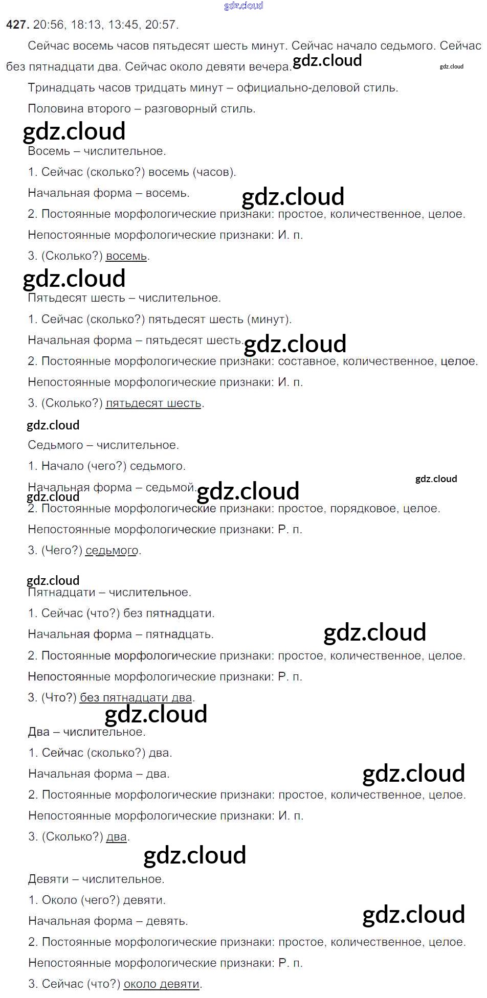 Ответ на задание 427 Учебник Русский язык за 6 (шестой) класс Баранов, Ладыженская, Тростенцова, Григорян, Кулибаба 2015, 2022 Часть 1, 2