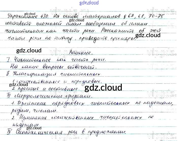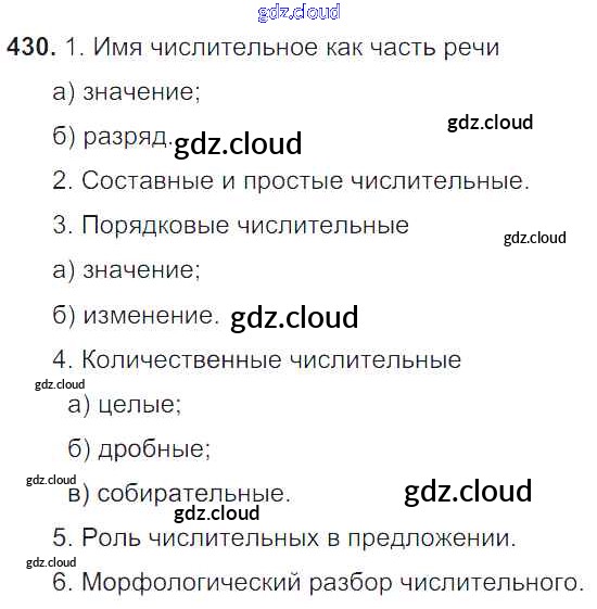 Ответ на задание 430 Учебник Русский язык за 6 (шестой) класс Баранов, Ладыженская, Тростенцова, Григорян, Кулибаба 2015, 2022 Часть 1, 2