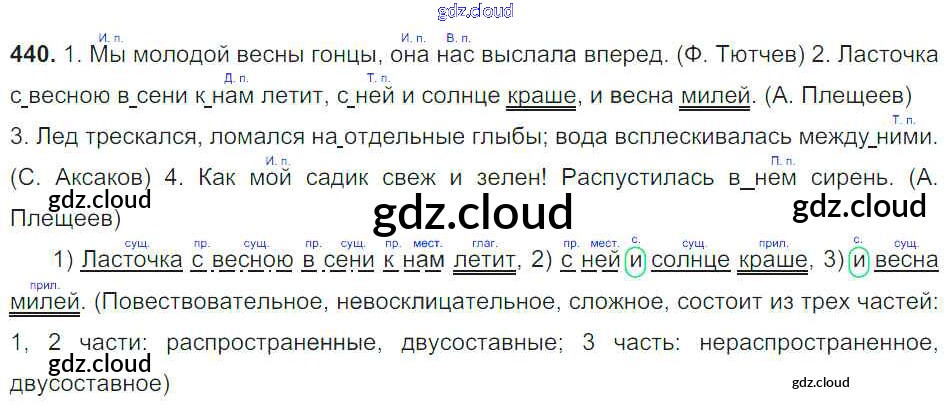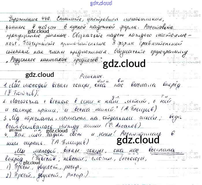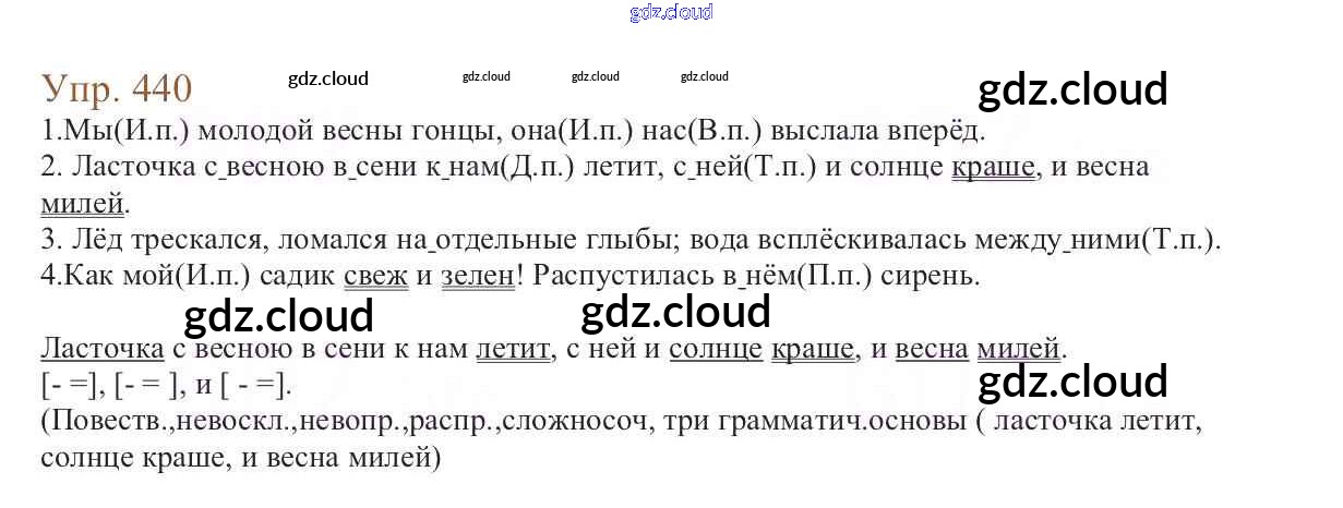 Ответ на задание 440 Учебник Русский язык за 6 (шестой) класс Баранов, Ладыженская, Тростенцова, Григорян, Кулибаба 2015, 2022 Часть 1, 2