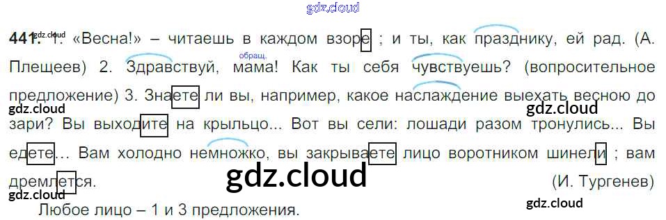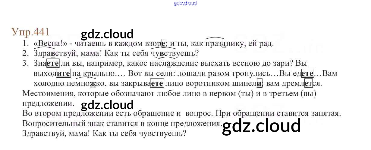 Ответ на задание 441 Учебник Русский язык за 6 (шестой) класс Баранов, Ладыженская, Тростенцова, Григорян, Кулибаба 2015, 2022 Часть 1, 2