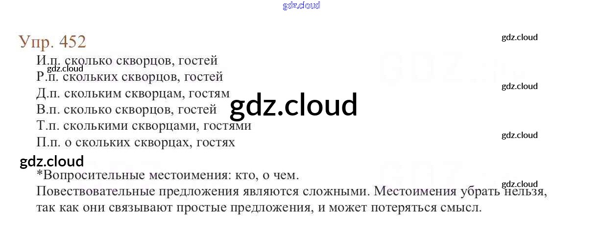 Ответ на задание 452 Учебник Русский язык за 6 (шестой) класс Баранов, Ладыженская, Тростенцова, Григорян, Кулибаба 2015, 2022 Часть 1, 2