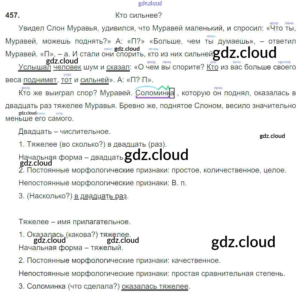 Ответ на задание 457 Учебник Русский язык за 6 (шестой) класс Баранов, Ладыженская, Тростенцова, Григорян, Кулибаба 2015, 2022 Часть 1, 2