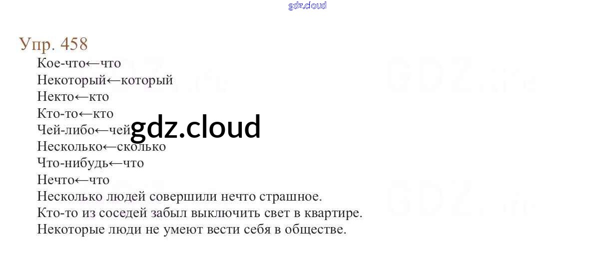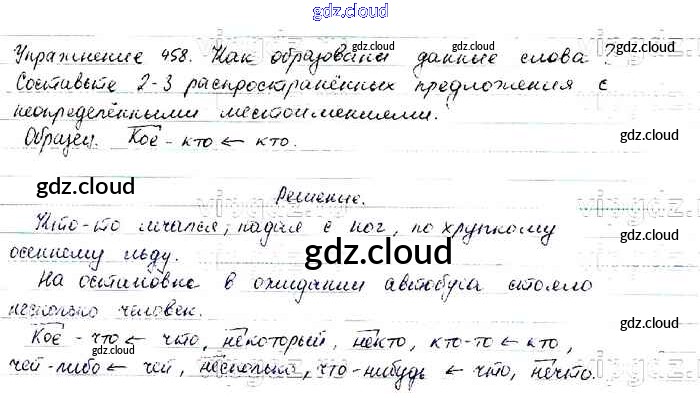 Ответ на задание 458 Учебник Русский язык за 6 (шестой) класс Баранов, Ладыженская, Тростенцова, Григорян, Кулибаба 2015, 2022 Часть 1, 2