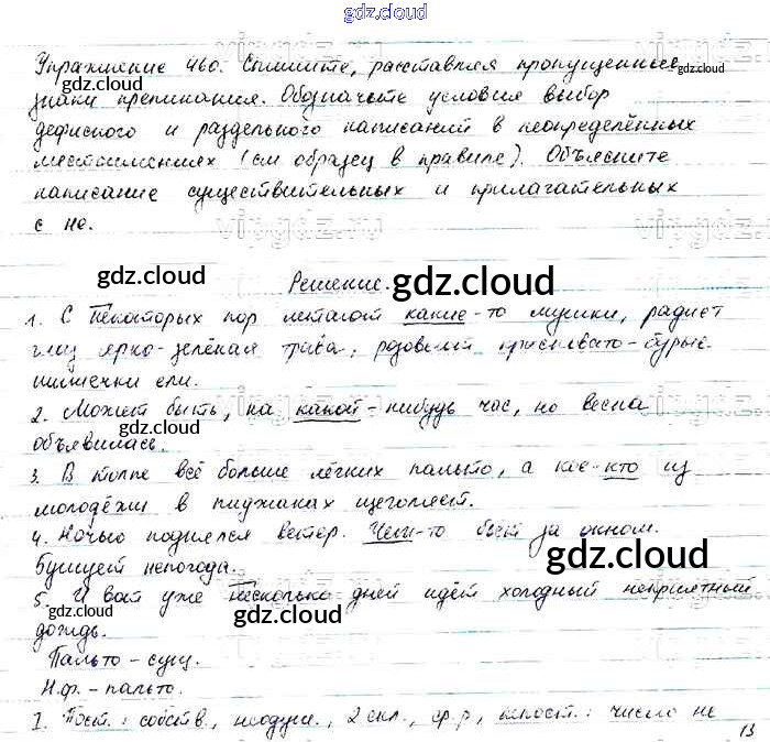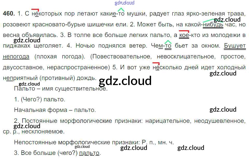 Ответ на задание 460 Учебник Русский язык за 6 (шестой) класс Баранов, Ладыженская, Тростенцова, Григорян, Кулибаба 2015, 2022 Часть 1, 2