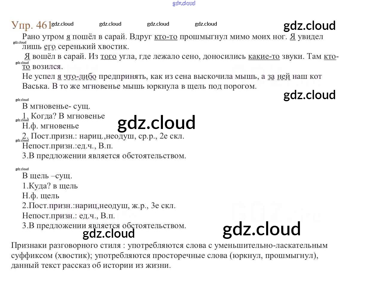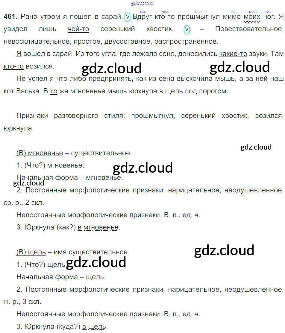Ответ на задание 461 Учебник Русский язык за 6 (шестой) класс Баранов, Ладыженская, Тростенцова, Григорян, Кулибаба 2015, 2022 Часть 1, 2